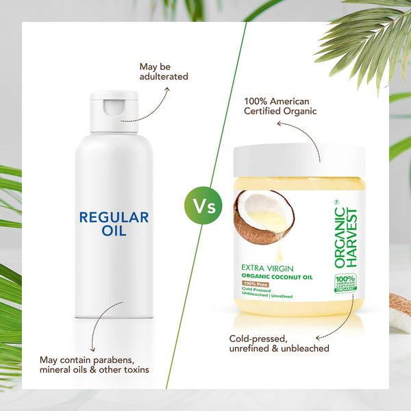 Organic Harvest Extra Virgin Organic Coconut Oil: 100% Pure | For Hair & Skin, Coconut Virgin Oil for Baby Massage, 100% American Certified Organic, Paraben & Sulphate-free, 200ml
