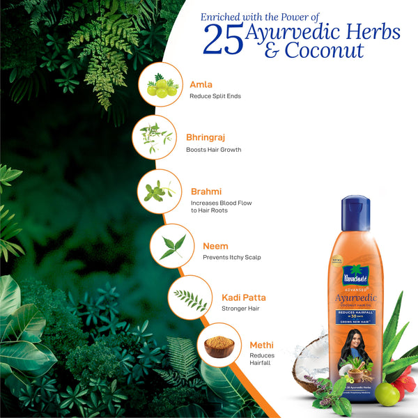 Parachute Advansed Ayurvedic Coconut Hair Oil | For Hair Fall Control & Hair Growth | With Coconut & 25 Ayurvedic Herbs like Amla, Neem, Bhringraj, Brahmi, Methi etc | Clinically Proven to Reduce Hair Fall in 30 Days | 300ml