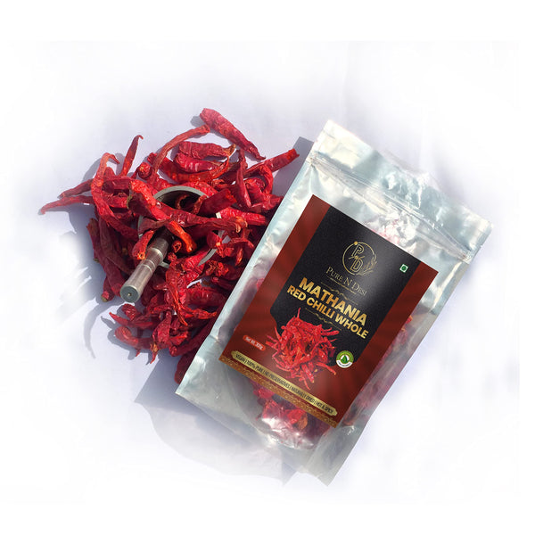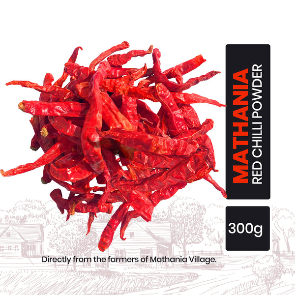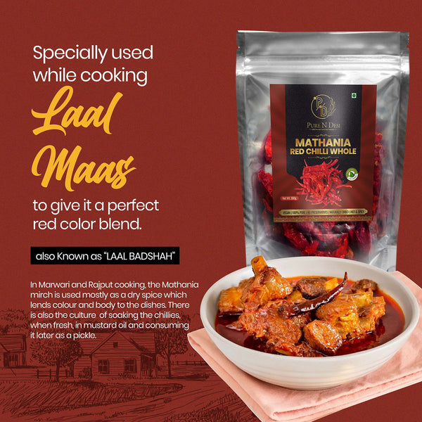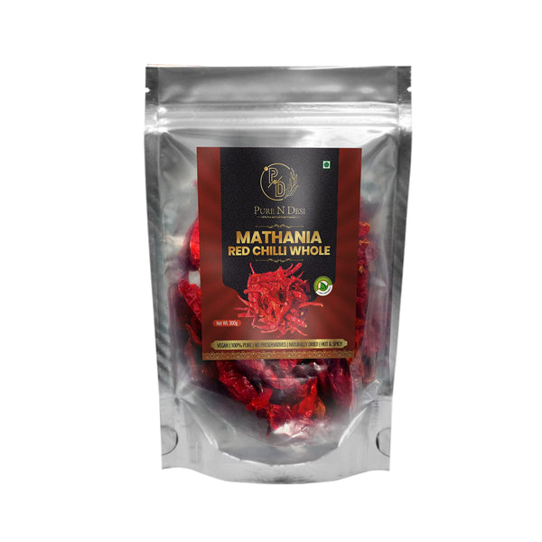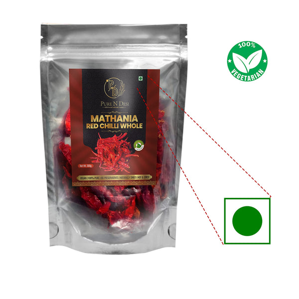 PURE N DESI Original Rajasthani Dried Mathania Whole Chilies Without Stems- Hand Picked/Sun Dried/Organically Produced/Authentic Marwari Taste - 300 Grams, Vegetable Masala