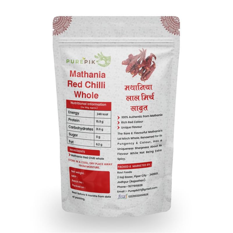 Purepik Mathania Red Chilli Whole (Lal Mirch Sabut) Stemless - 1Kg