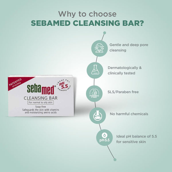 SebaMed Cleansing Bar, Ph5.5, Gentle, Non Drying, Soap Free, Moisturizing Bath, Vitamins & Amino Acids L Free From Phthalates, Dermatologically & Clinically Tested L Ideal, 100 Gm