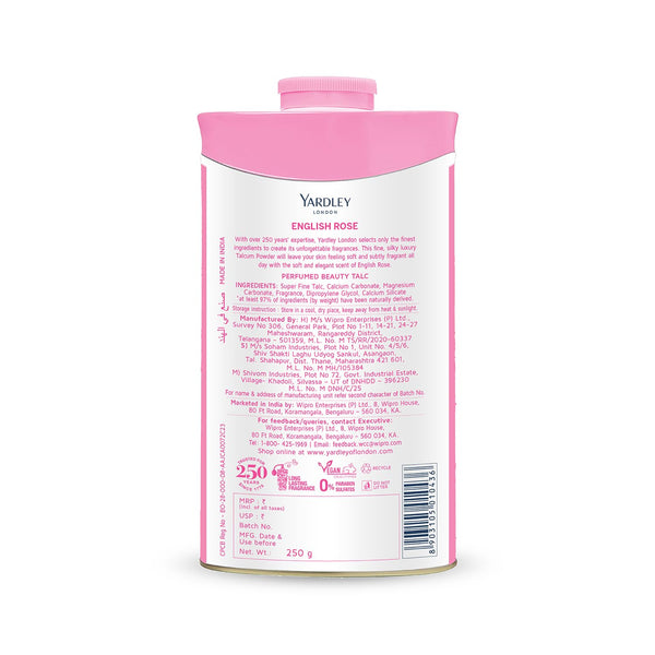4x Yardley London English Rose Perfumed Talc| Fragrant Beauty Talc for Women| Smooth texture| 250g each - Pack of 4