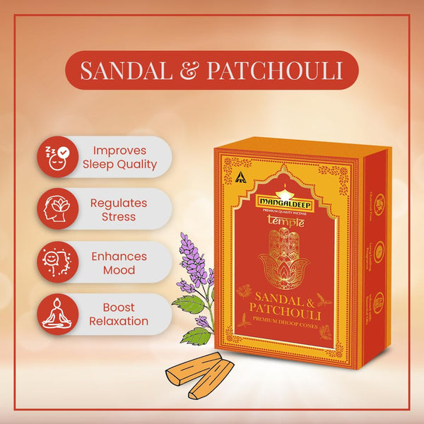 Mangaldeep Temple Premium Bambooless Dhoop Cones - Sandal & Patchouli - Ceramic Stand Inside - Charcoal Free (40 Cones)
