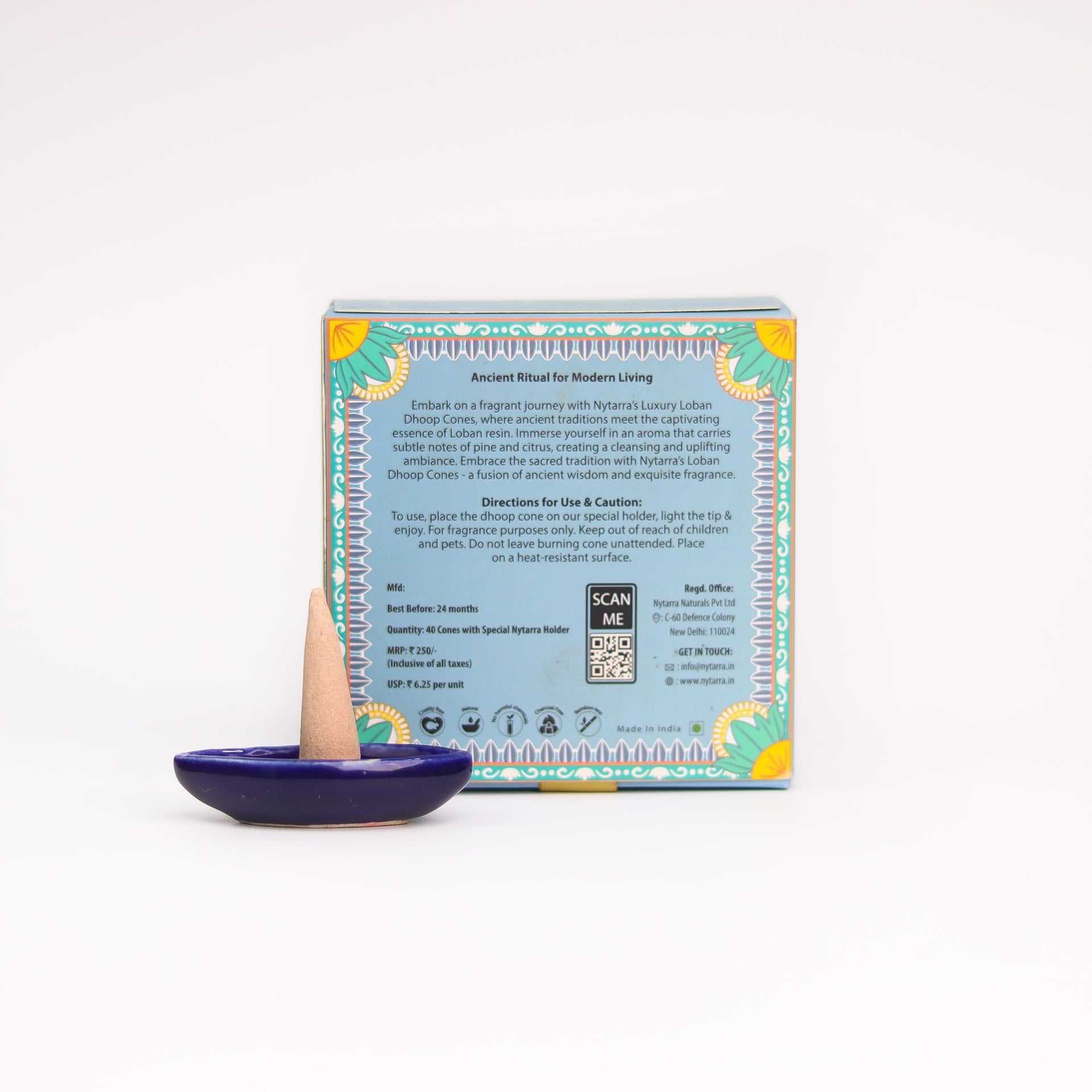 Nytarra's Loban Luxury Incense Cones | 40 pcs | Special Ceramic Holder | Dhoop Cones for Fragrance | Dhoop Cones for Pooja, Home, Office, Aromatherapy & Meditation