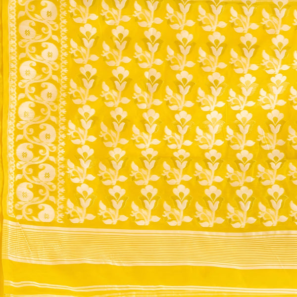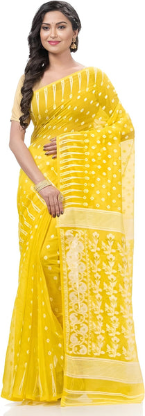 AS Aishwarya Sarees Cotton Silk Women's Bengal Special Soft Dhakai Jamdani Saree For Women With Blouse Piece (Yellow)