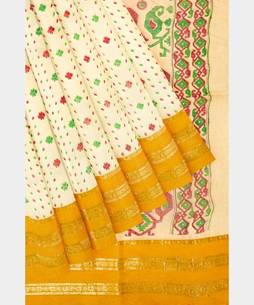 eC ESHA'S COLLECTION Women's Pure Cotton Jamdani Printed Tant Saree Without Blouse Piece (Mustard)