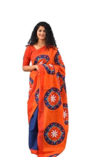 INAYA HAND BLOCK Printed Cotton mulmul Sari With Blouse Piece (MULTI-CO LOUR_Free Size)