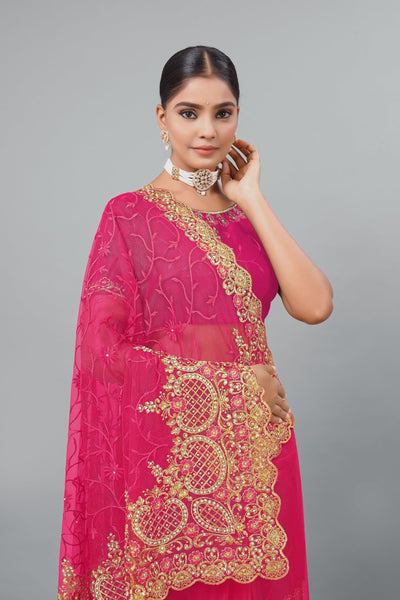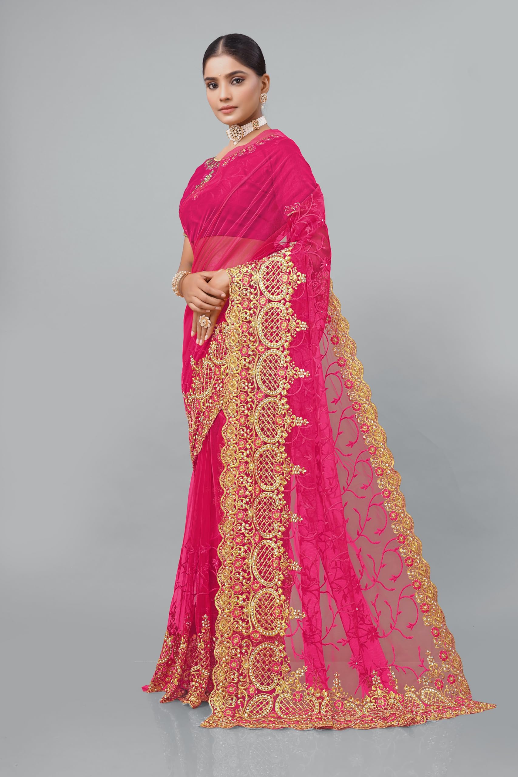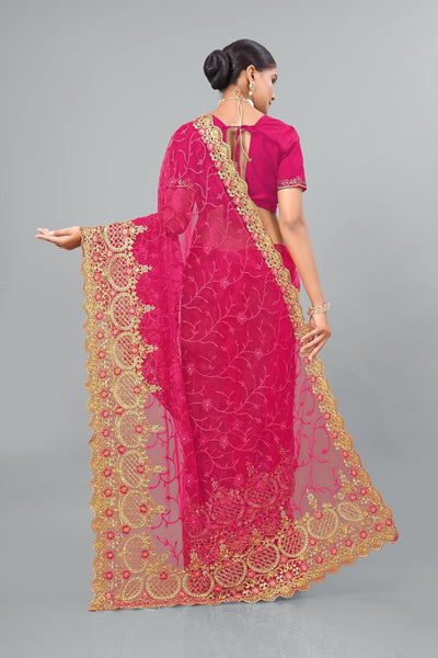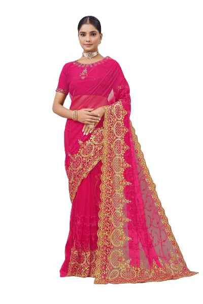KHRITI FAB Women's New Embroidery Net Sari With Unstitched Blouse Piece(Free Size) (Gajari)