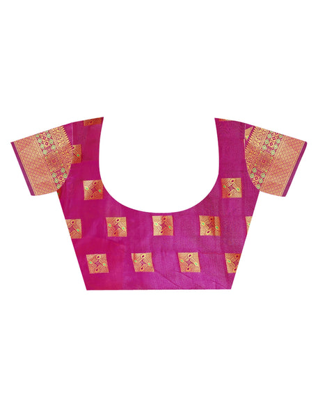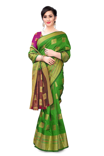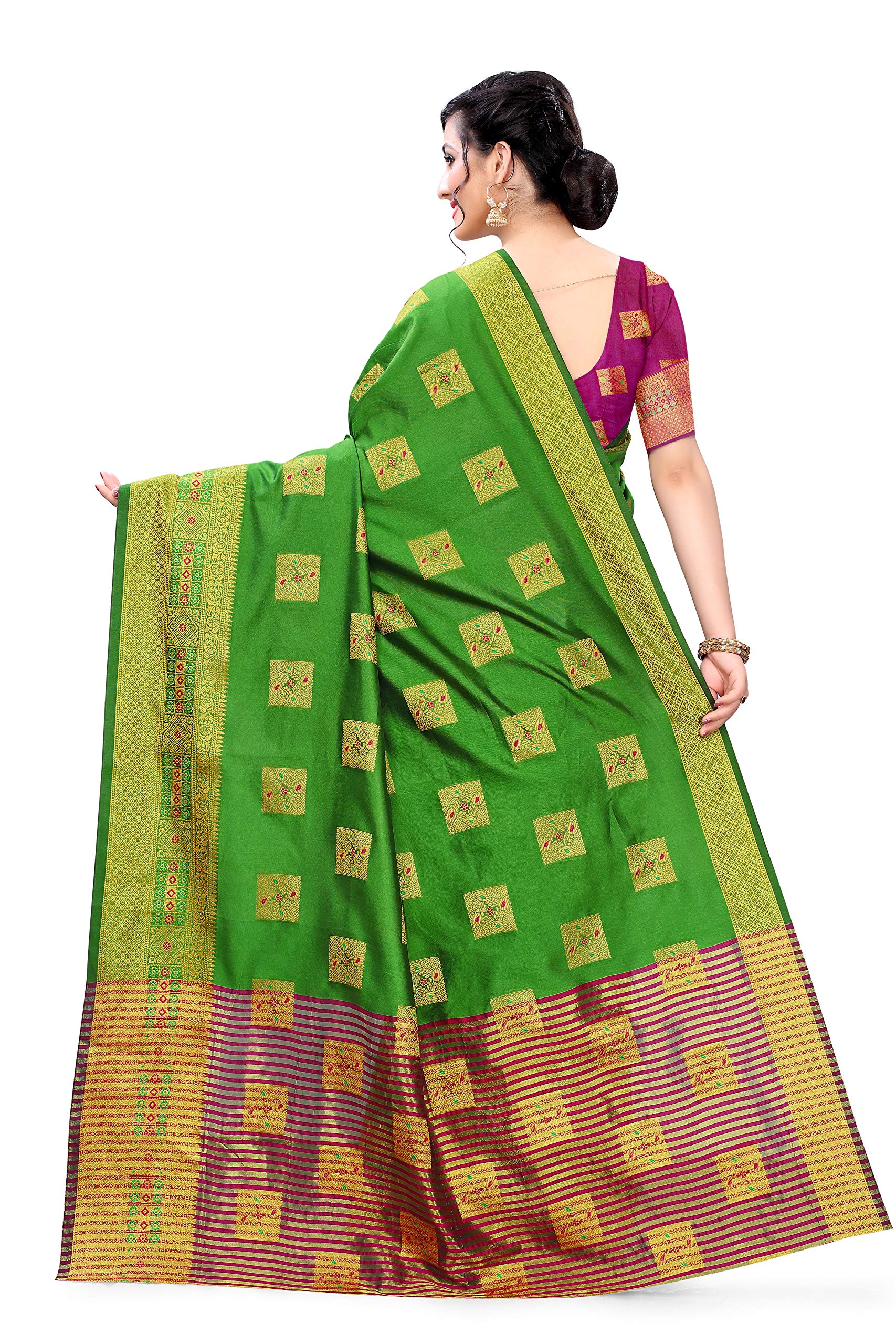 KILI FASHION Women's Striped Pallu Geometric Banarasi Cotton Silk Saree with Blouse Piece (Green, Free Size)
