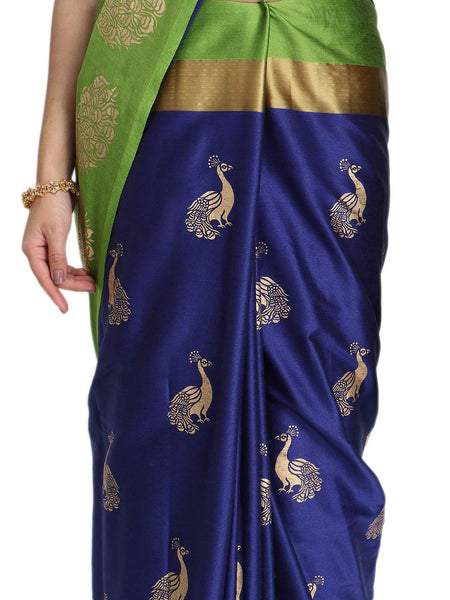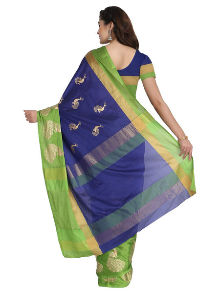 Leriya Fashion Women's Soft Cotton Silk Foli Work (jari Work) Saree with Belt(Free Size) (Blue)