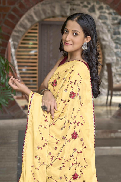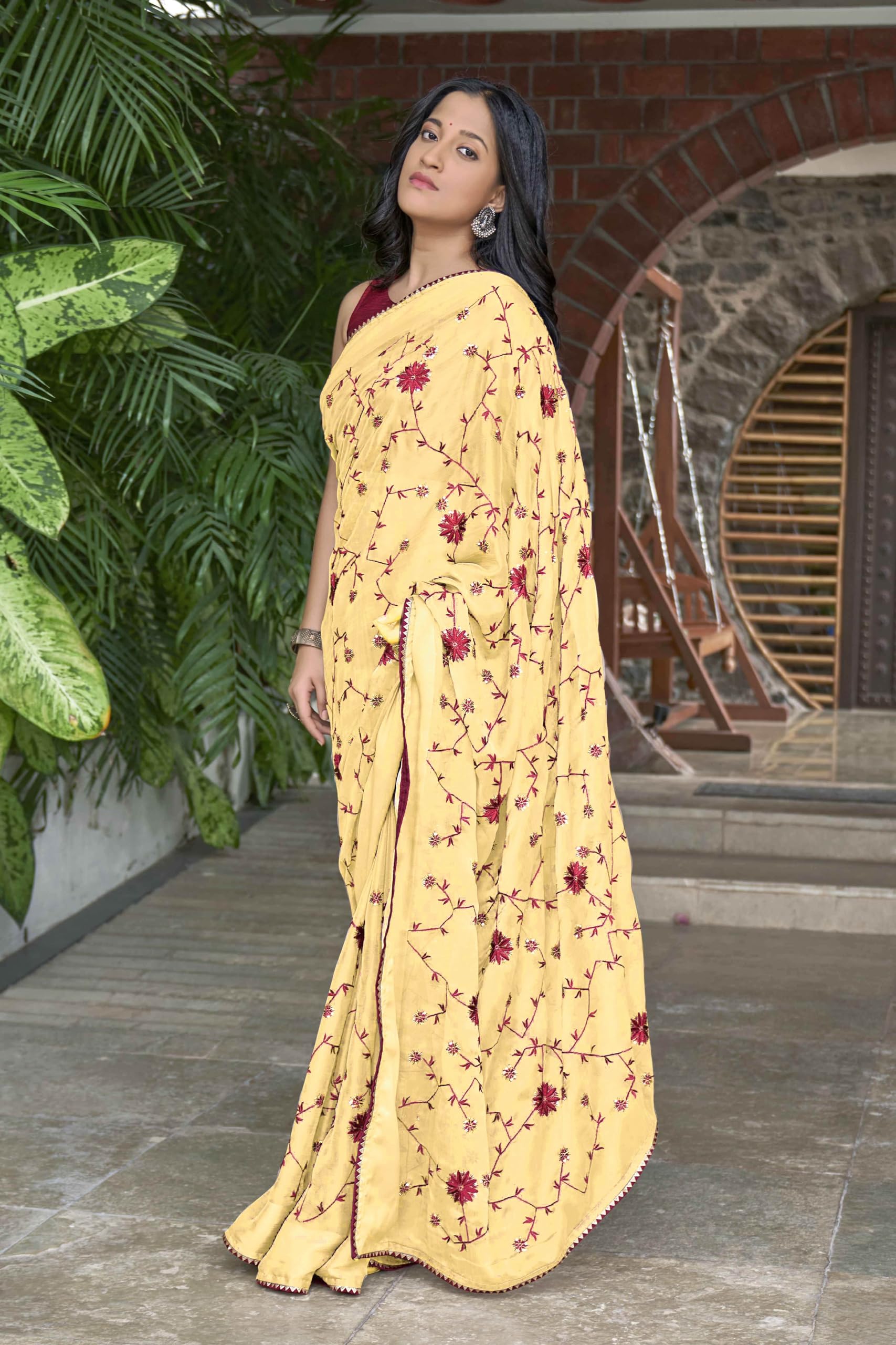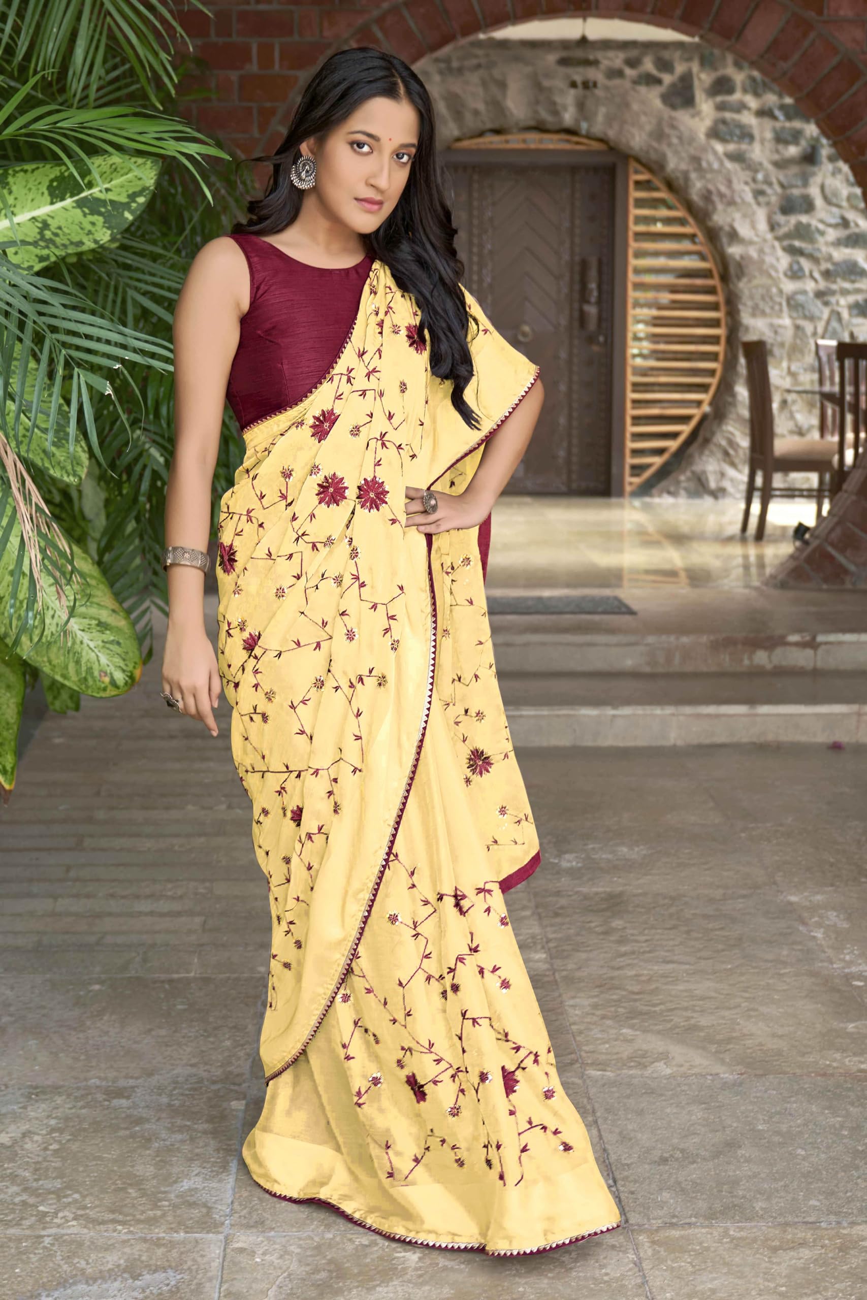 MANOHARI Yellow Poly Georgette Sequence And Embroidery Saree With Blouse Piece_Mn1923 - Women