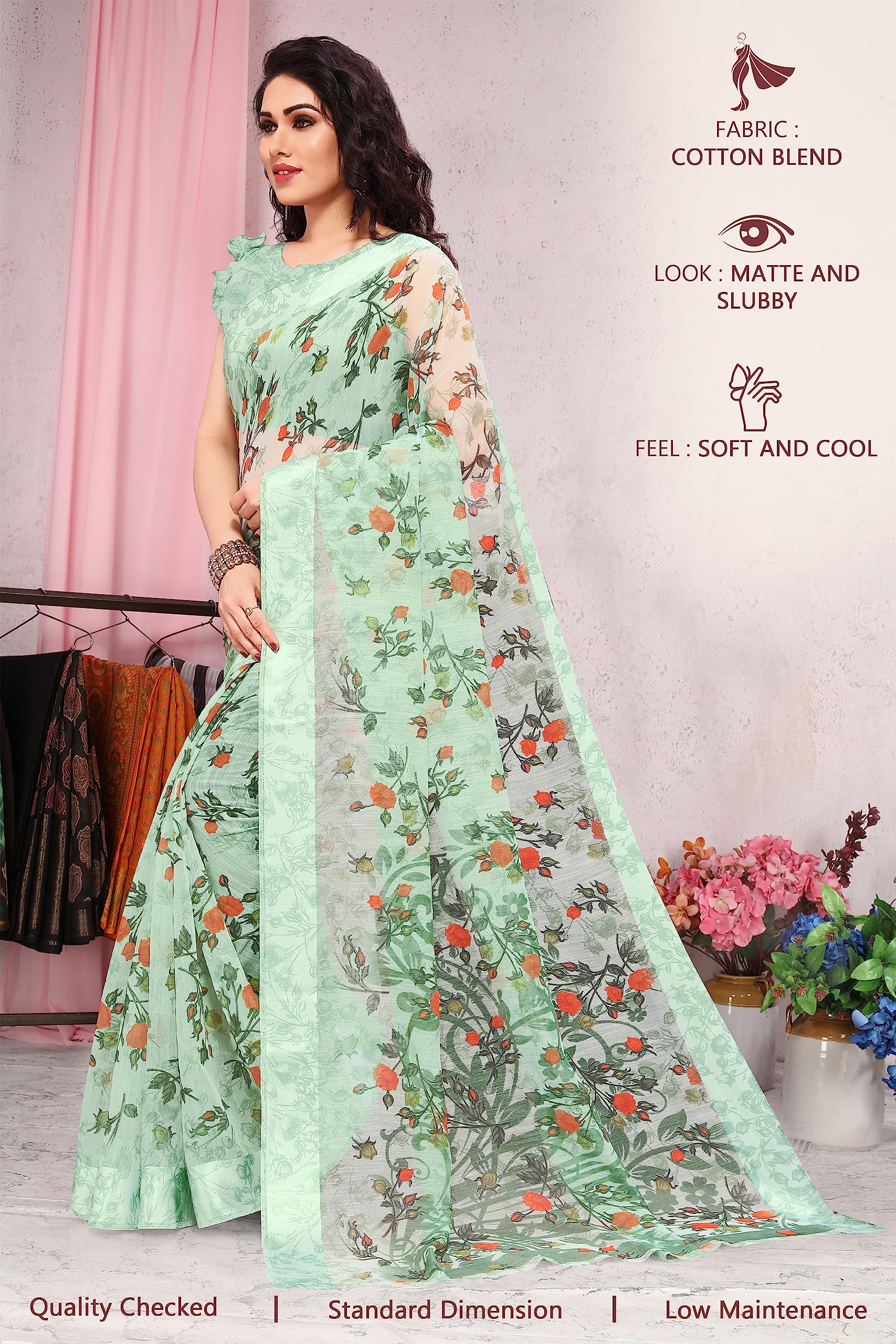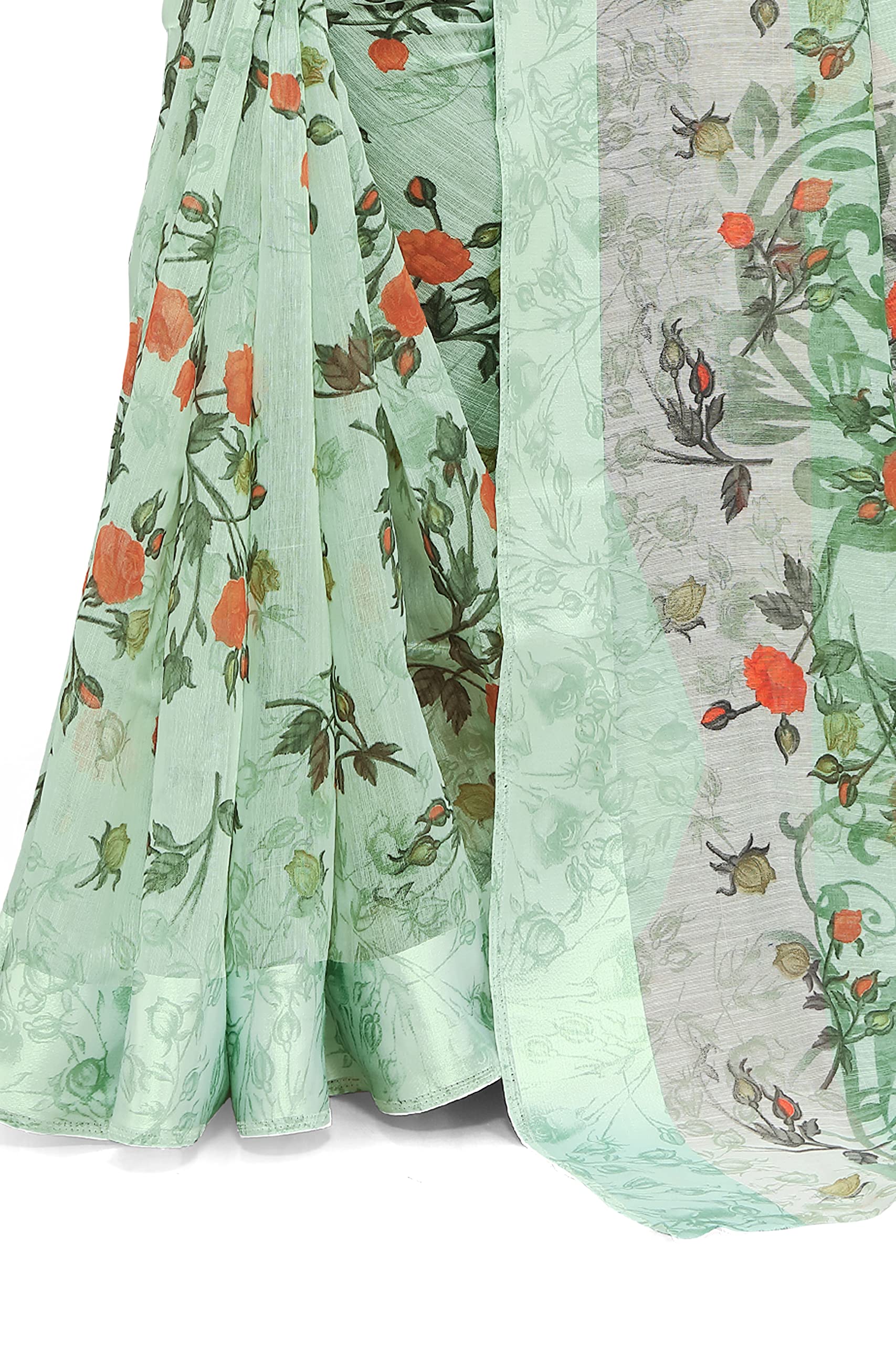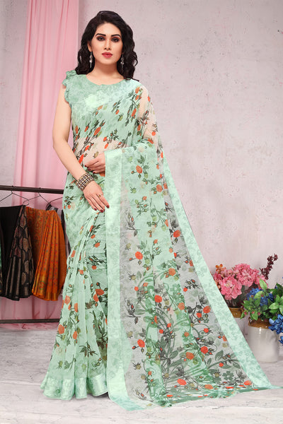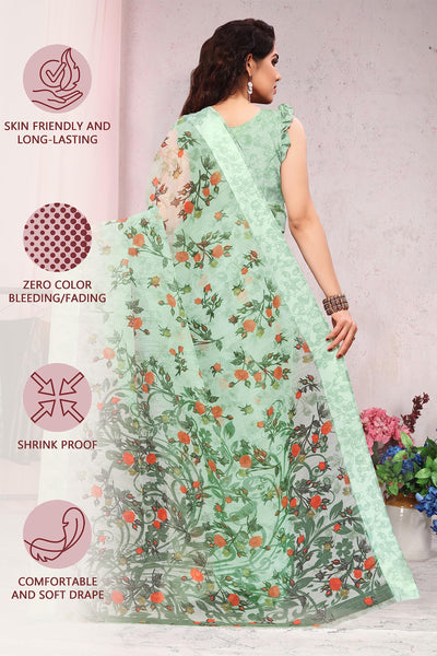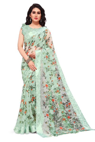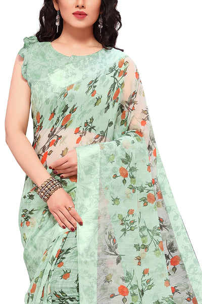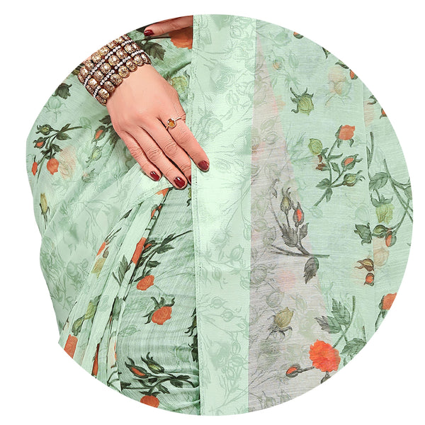 MIRCHI FASHION Sourbh Women's Fancy Cotton Blend Tropical Floral Printed Saree with Blouse Piece (20462-Seafom Green)
