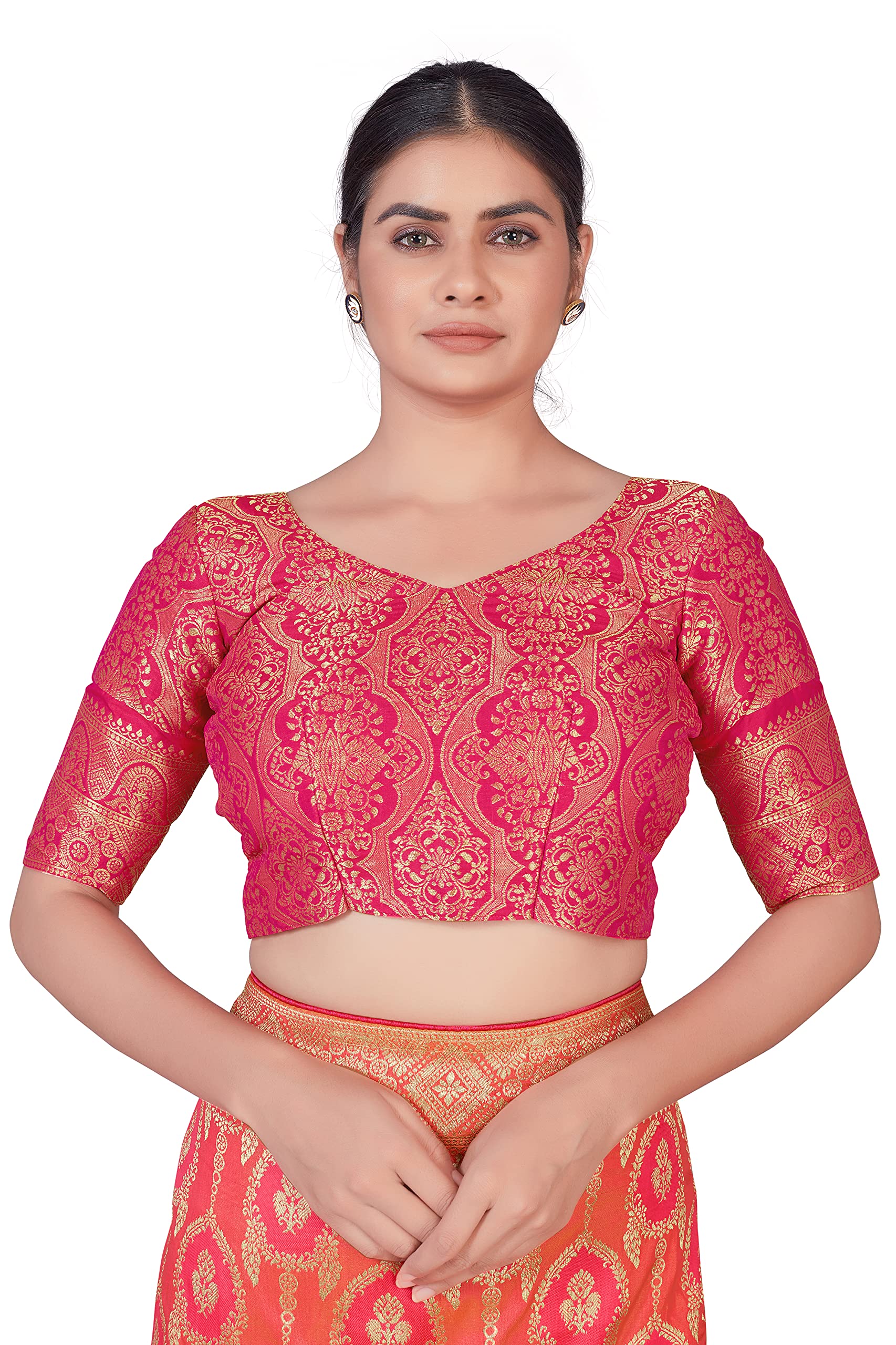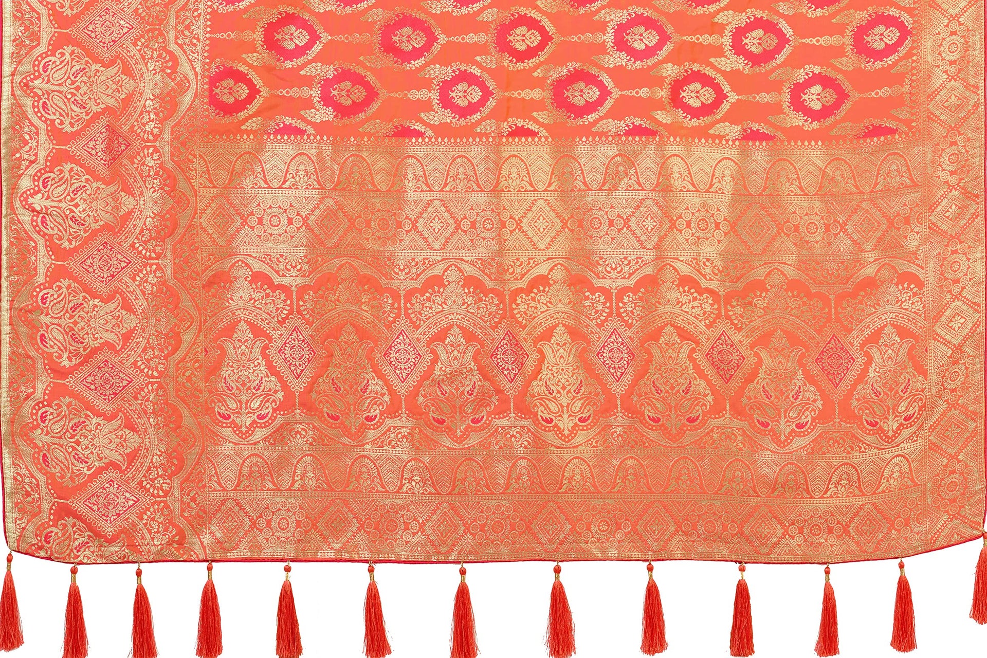 Monjolika Fashion Women's Banarasi Silk Peach Color Zari Woven Saree With Separate Embellished And Unsttiched Blouse Piece (Peach)