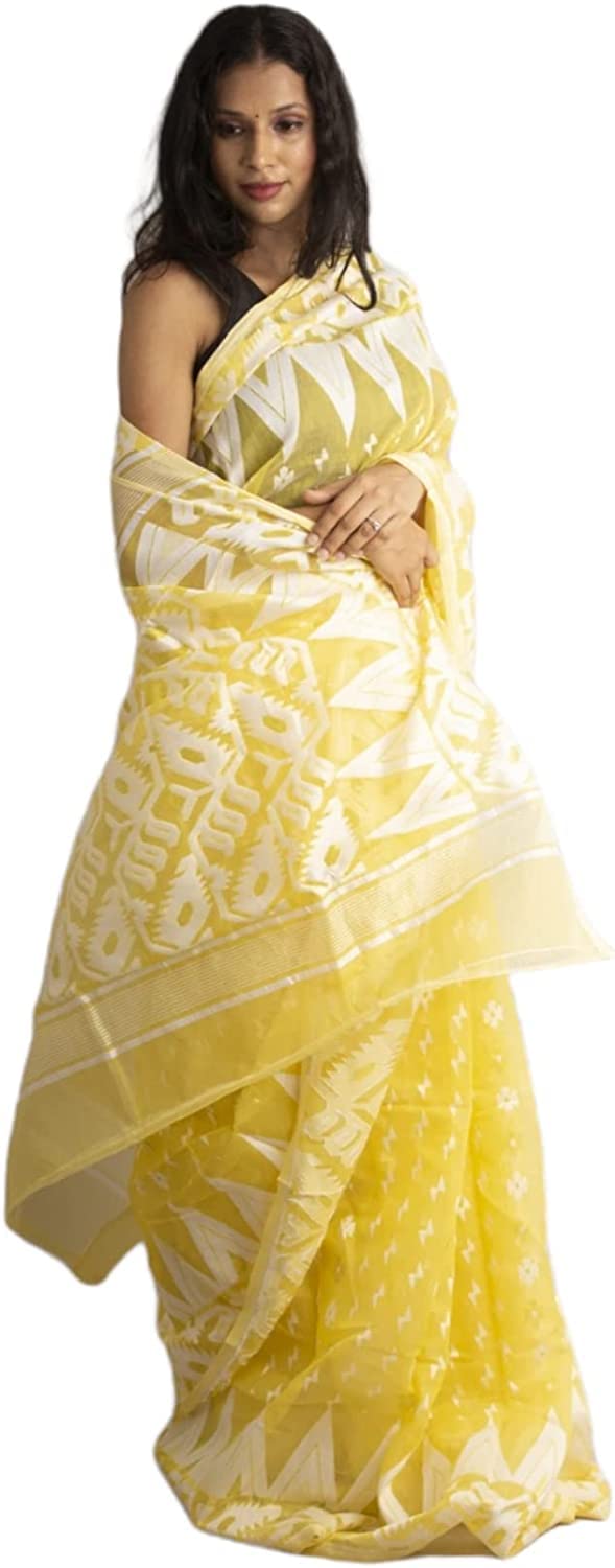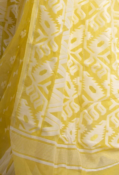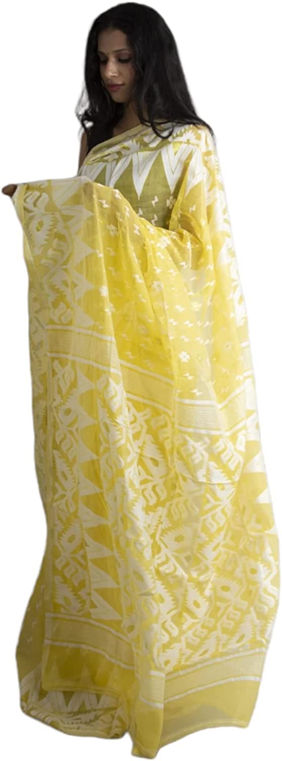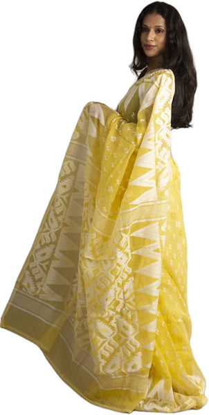 Moumita's Saree Women's Traditional Bengal Cotton Silk Soft Jamdani Saree (Yollow), Yellow