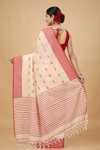 OISHANI SAREE GHOR Women's Traditional Bengal Cotton Handloom Saree With Blouse Peice (Muga)