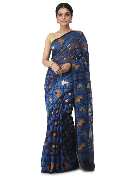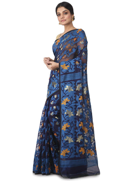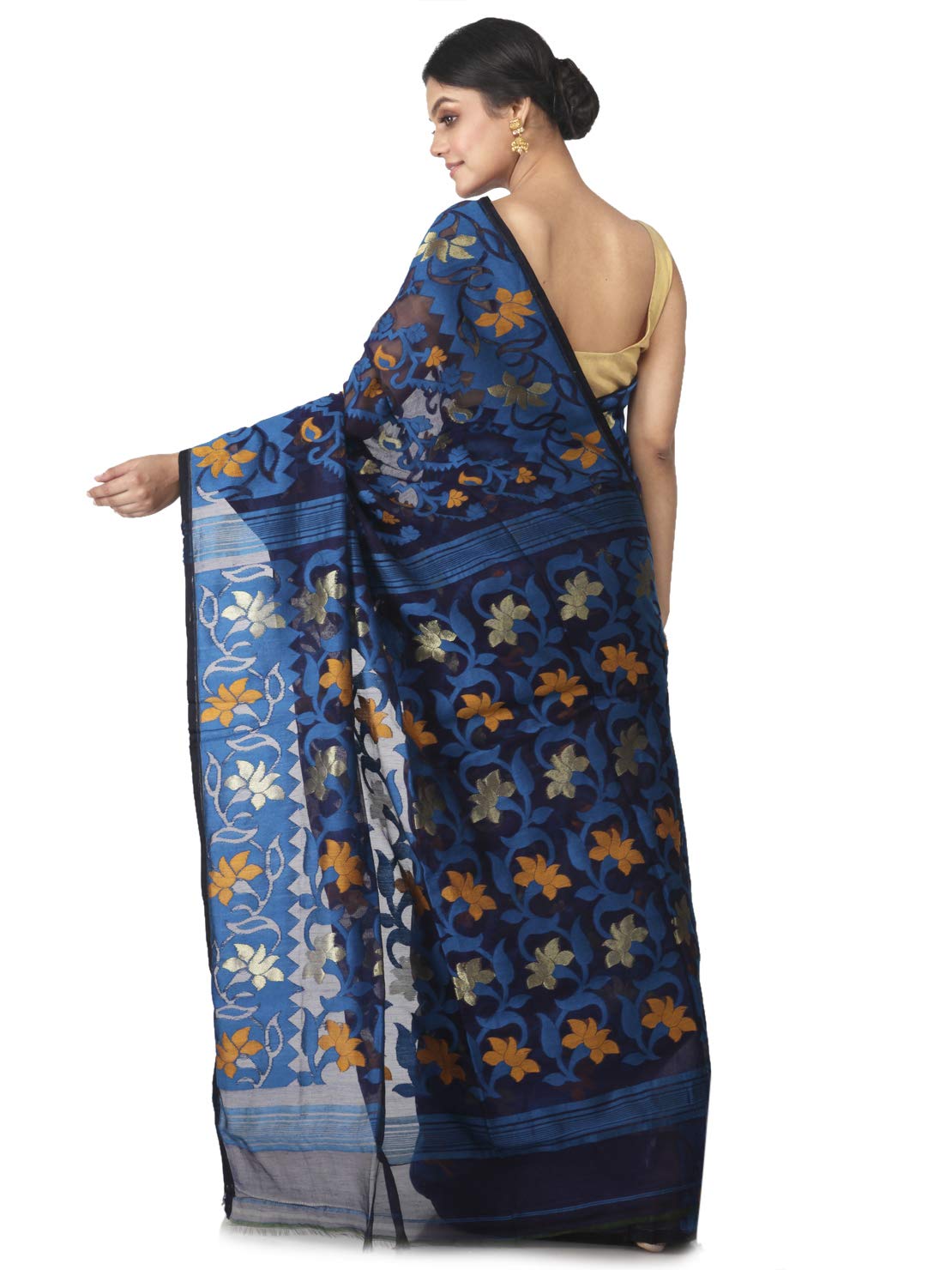 PinkLoom Women's Soft Cotton Jamdani Saree Without Blouse Piece, Blue, Gb166