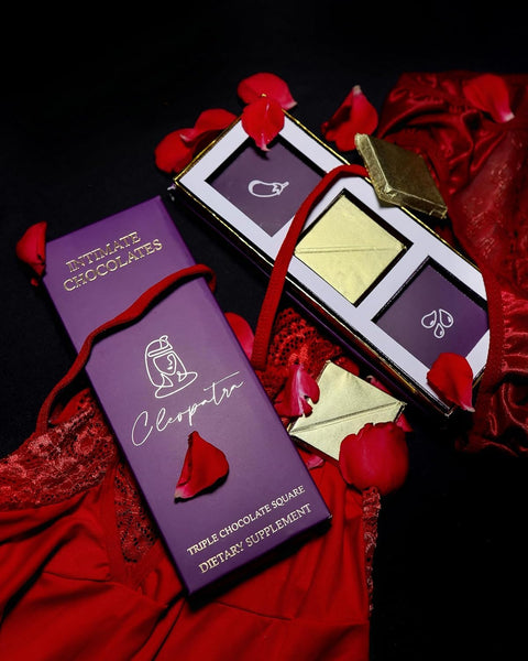 Cleopatra Intimate Chocolate Bars For Uplifting Mood, Vitality, More Desire & Enjoyment Best Gift Set Ideal For Men & Women, 60g With 1 Handcuffs (Hathkadi), 1 Blindfold & 2 Dice