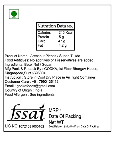 Godka Raw Diamond Cutting Areca Nut Pieces/Kachhe Supari Tukda/Betel Nut/Sopari Tukda, 500g