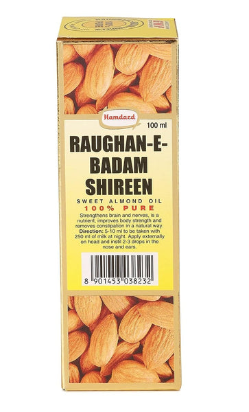 Hamdard RAUGHAN-E-BADAM SHIREEN Sweet Cold Pressed 100% Pure and Natural Almond Oil -(100 ML)-Pack of 3