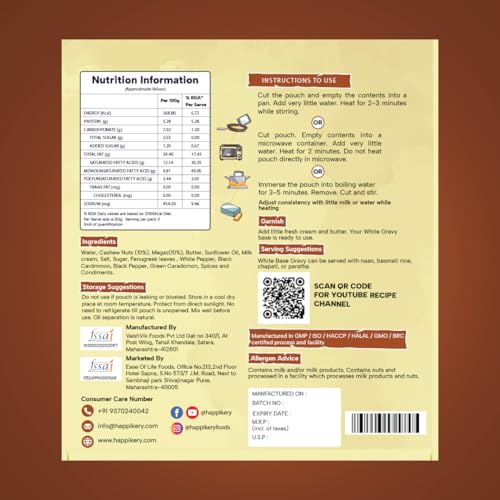 Happikery All Purpose White Cashew Masala Gravy Base 1Kg (Veg Mix, Upto 5-7 Servings) | Ready to Cook Gravy Paste with Blended Spices| No Preservatives or Artificial Colors|Indian and Mughlai Delicacies | Ready in 3 min