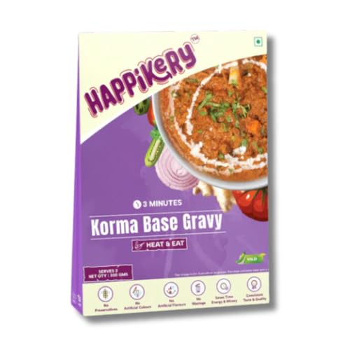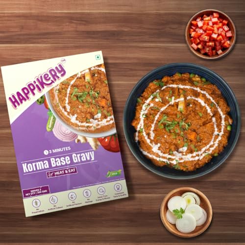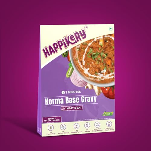 Happikery Korma Gravy Easy to Cook Gravy -1Kg (Veg Mix, Upto 5-7 Servings) |Pure Vegetarian | Mughlai-Style Curry Prepared with A Blend of Cream, Yoghurt, Cashews and Spices | Ready in 3 Min