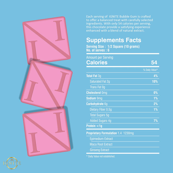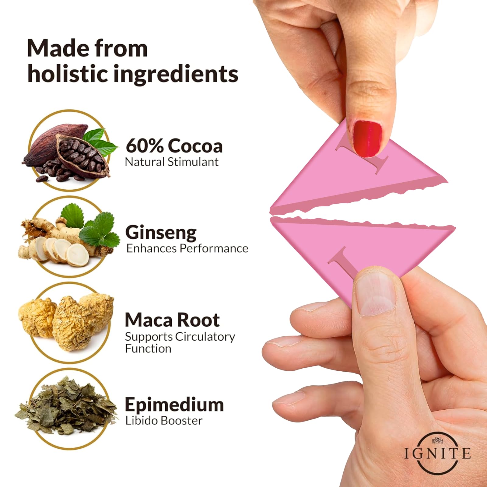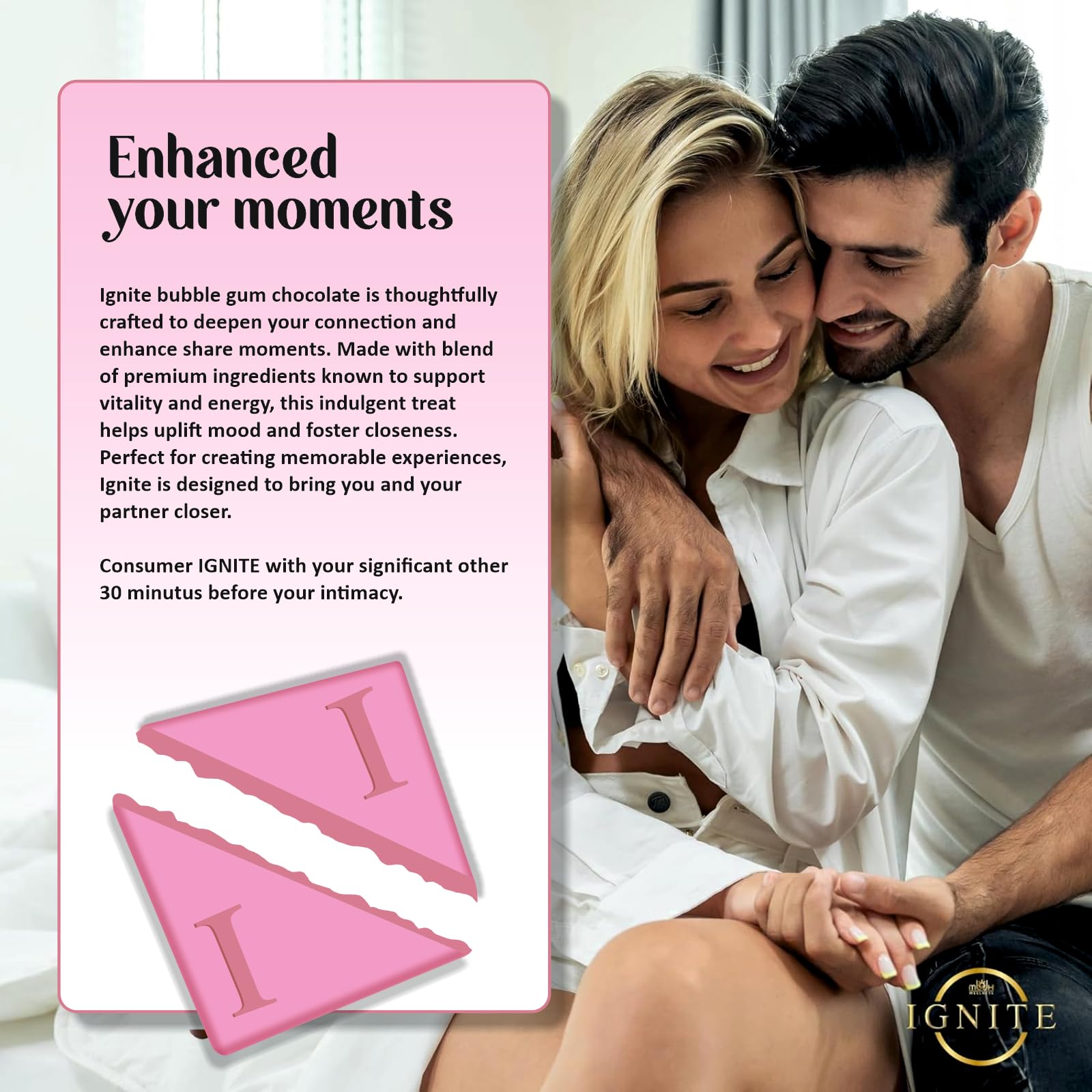 Ignite Chocolate Bars - Premium Bubblegum flavor Chocolate Squares for Couples - Vegetarian - Crafted with Epimedium and Maca Root for a Delightful Experience - Ideal for Men & Women