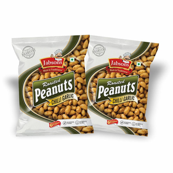 Jabsons Roasted Peanut Chilly Garlic |140g|Roasted| Non-Fried| pack of 2 | Gluten free|Healthy Ready to Eat Snacks|Jumbo Bharuchi Clay Roasted Peanut|Flavoured Peanuts| Moongphali Dana