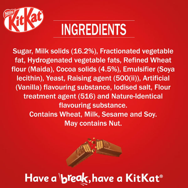 KIT KAT, 3 Fingers, Chocolate Coated, Wafer Bar –28.5g, Pack of 28 Units , 798g, Box