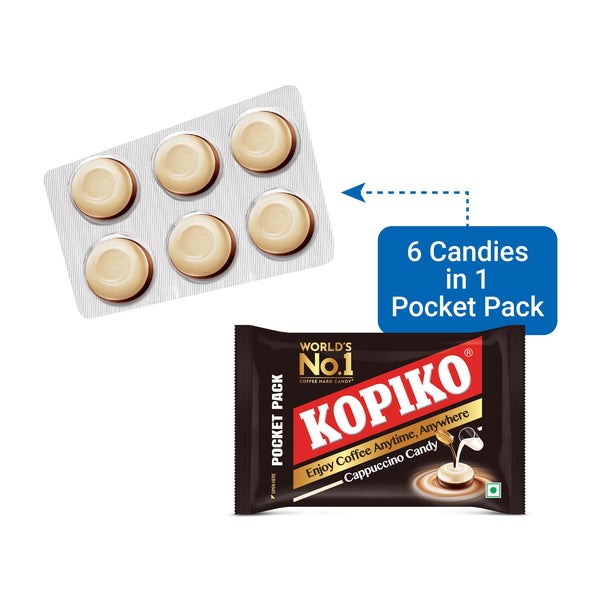 KOPIKO Cappuccino Coffee Candy - World's No 1 Coffee Hard Candy* - Pocket Pack -504 gm |24 Units X 6 Pieces in Each|