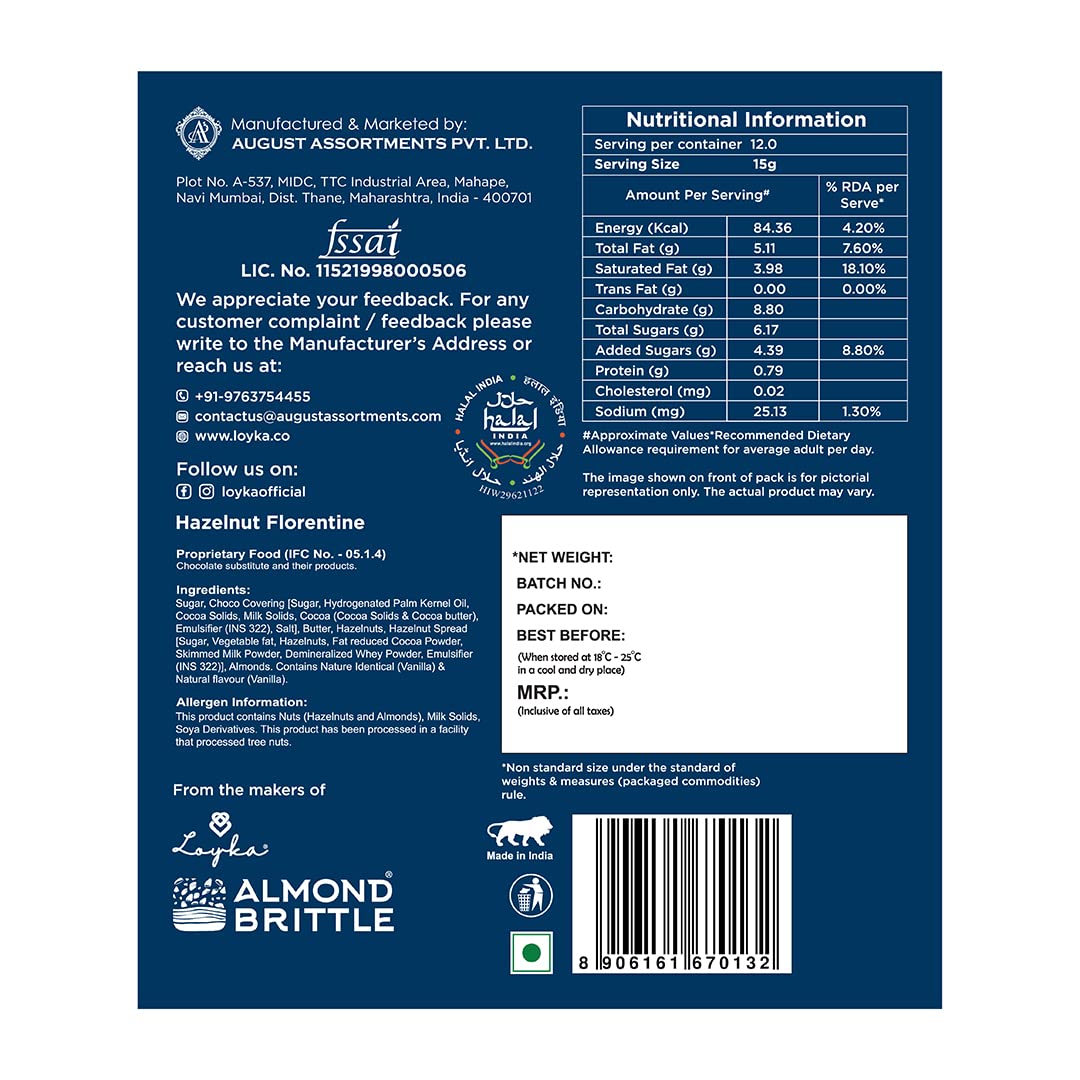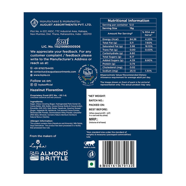 Loyka Hazelnut Florentine Box - 12 pcs | Premium Chocolate Gift Hamper | Choco & Nut Dryfruit Delicacy | Caramalised Hazelnuts coated with Dark Choco | Any-time snack