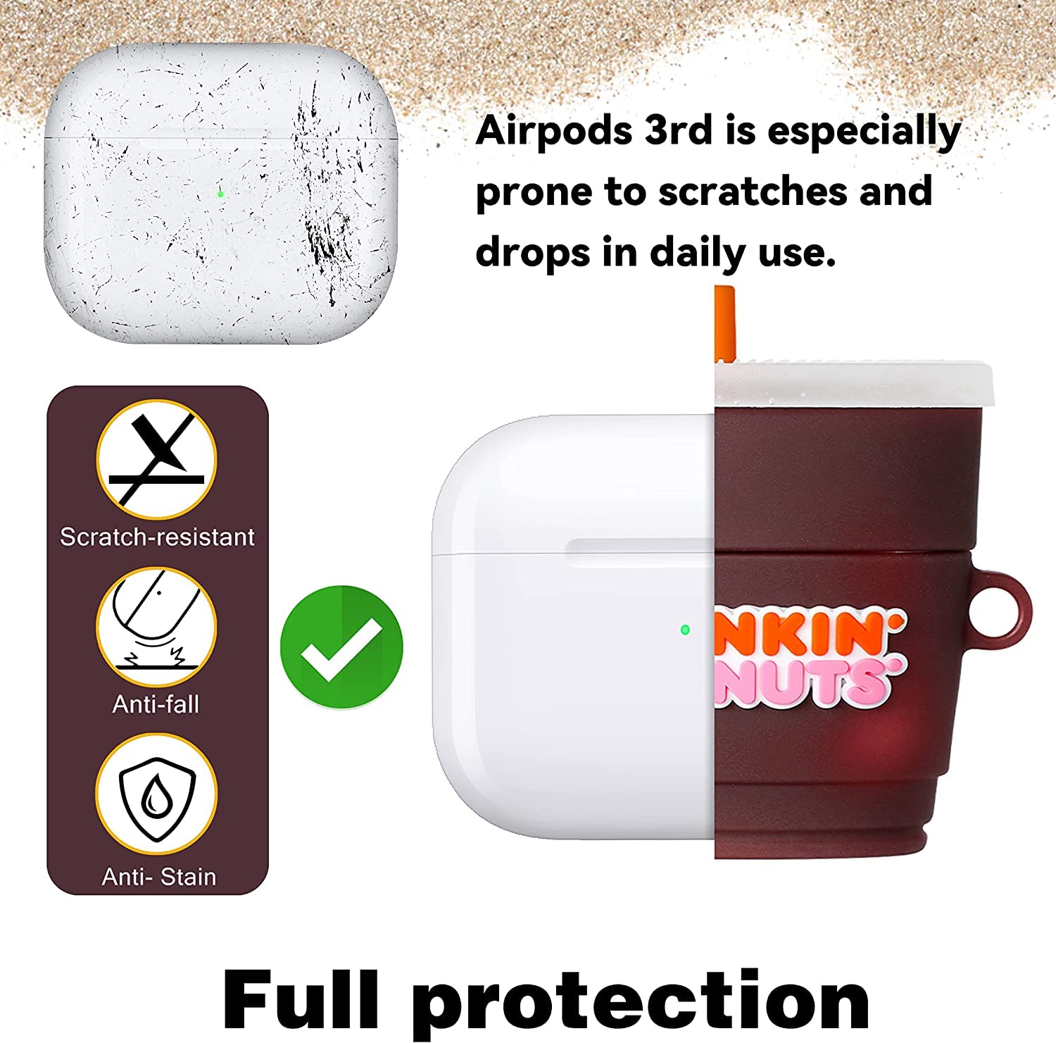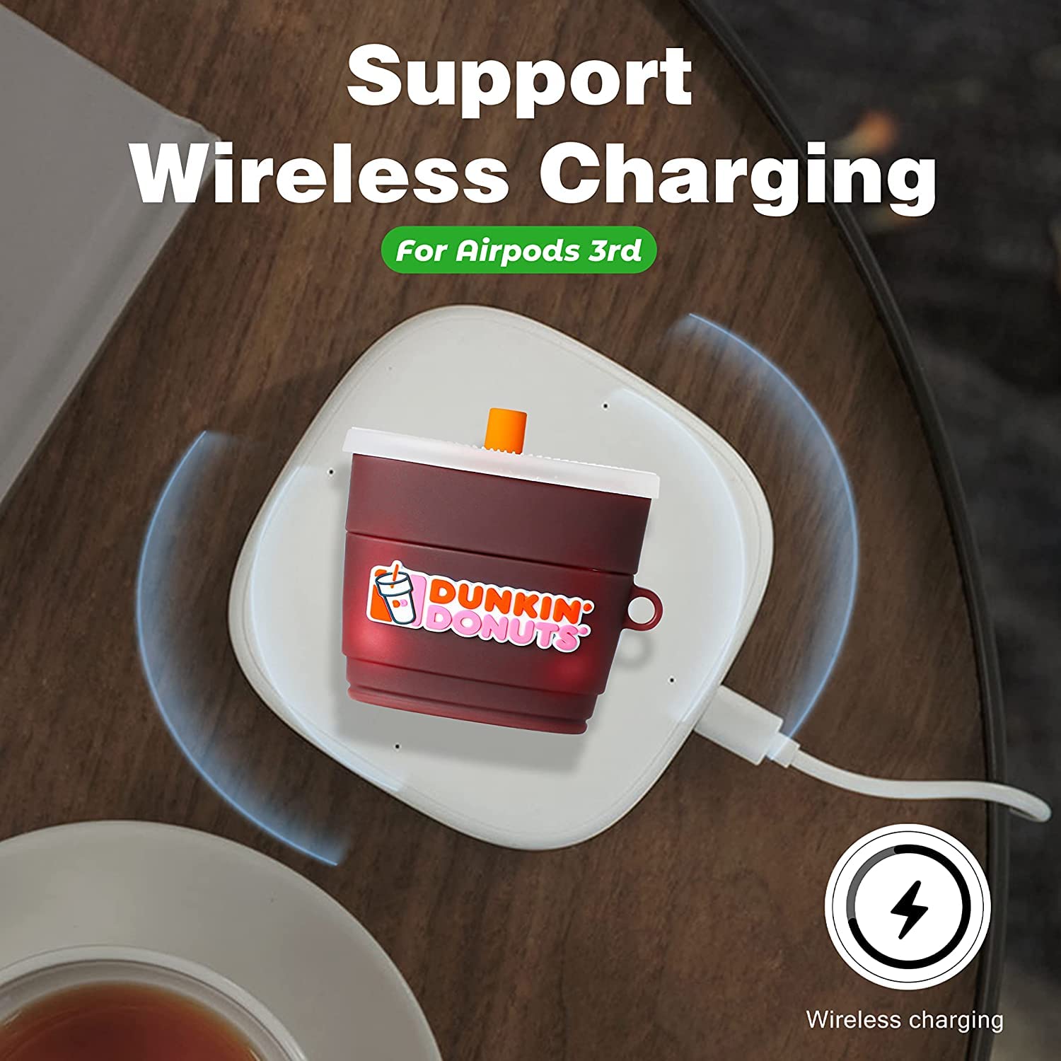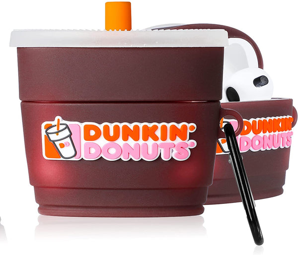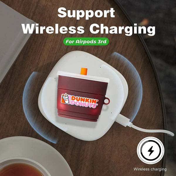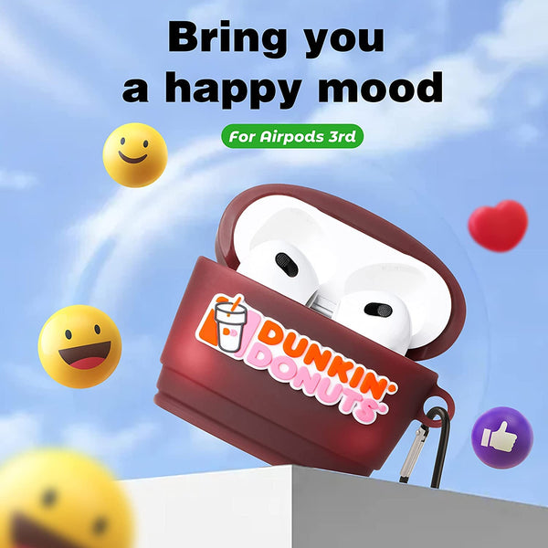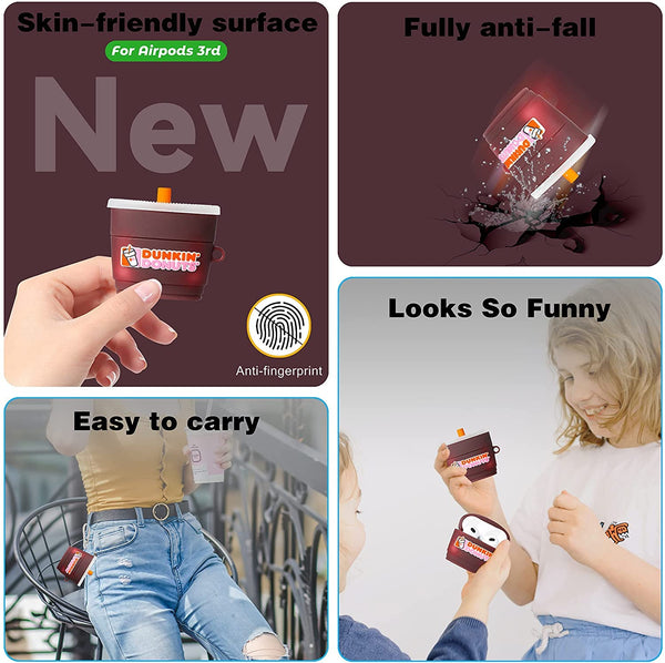 Meyaar for AirPods 3 Case Cover with Keychain Neck, Protective Silicone Case Skin Compatible with AirPods 3rd Generation (2021 Released), Shockproof, Supports Wireless Charging (Dunkin-Donuts)