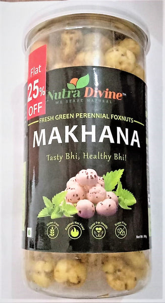 Nutra Divine- (FRESH GREEN PERENNIAL FOXNUTS)- MAKHANA (ROASTED)-90Gm