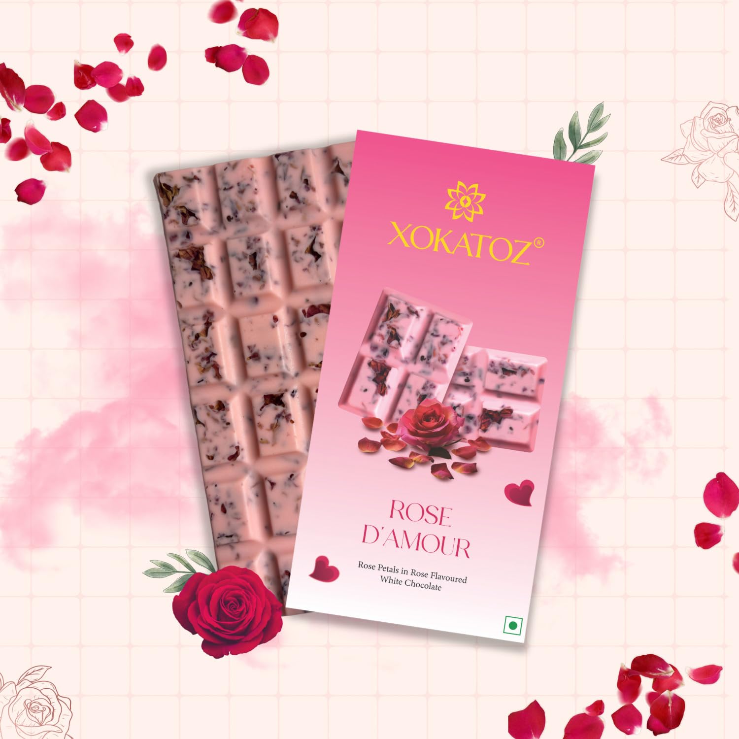 XOKATOZ Exotic Premium Chocolate - 1 Rose D’Amour + 1 Alphonso Mango Flavour - Flavoured White Chocolate Bars - Gift Set - Pack of 2, 150 gm (75gm X 2)