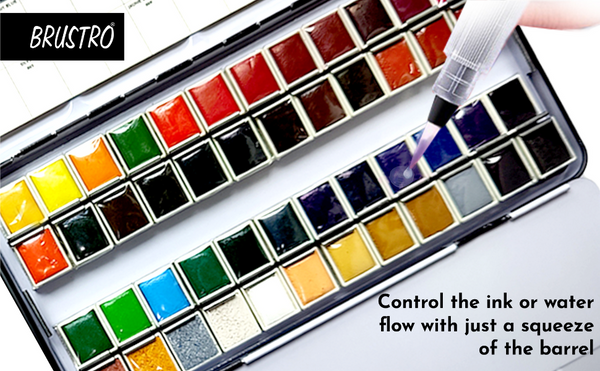 Brustro Aqua Squeeze Leak Proof Watercolour Brush Pen Flat, Small,Medium,Large (Assorted) - Pack of 3