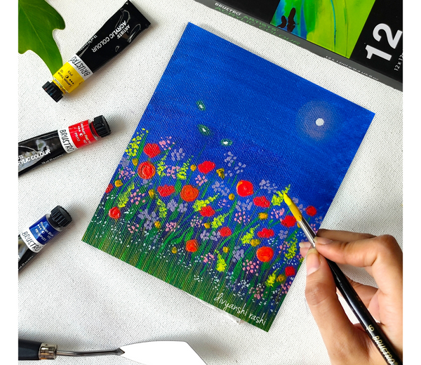 BRUSTRO Artists ’ Acrylic Colour Set of 12 Colours X 12ML Tubes with Gold Taklon Brush Set of 10 and Acrylic Paper 400 GSM A4-12 Sheets.