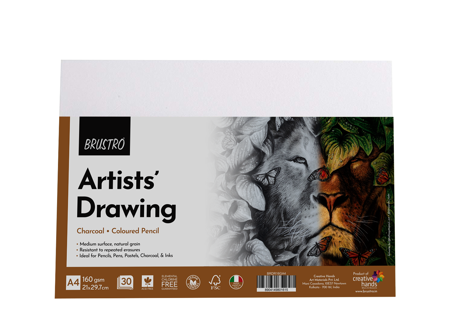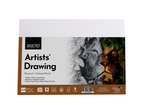 BRUSTRO Artist's Drawing Papers | 160 GSM, A4, Pack of 30 Sheets | Ideal for Students,Adults, Coloring, Art, Craft, Natural Grain, Graphite, Charcoal, Pastels, Sketching, Shading, Drawing and Portrait