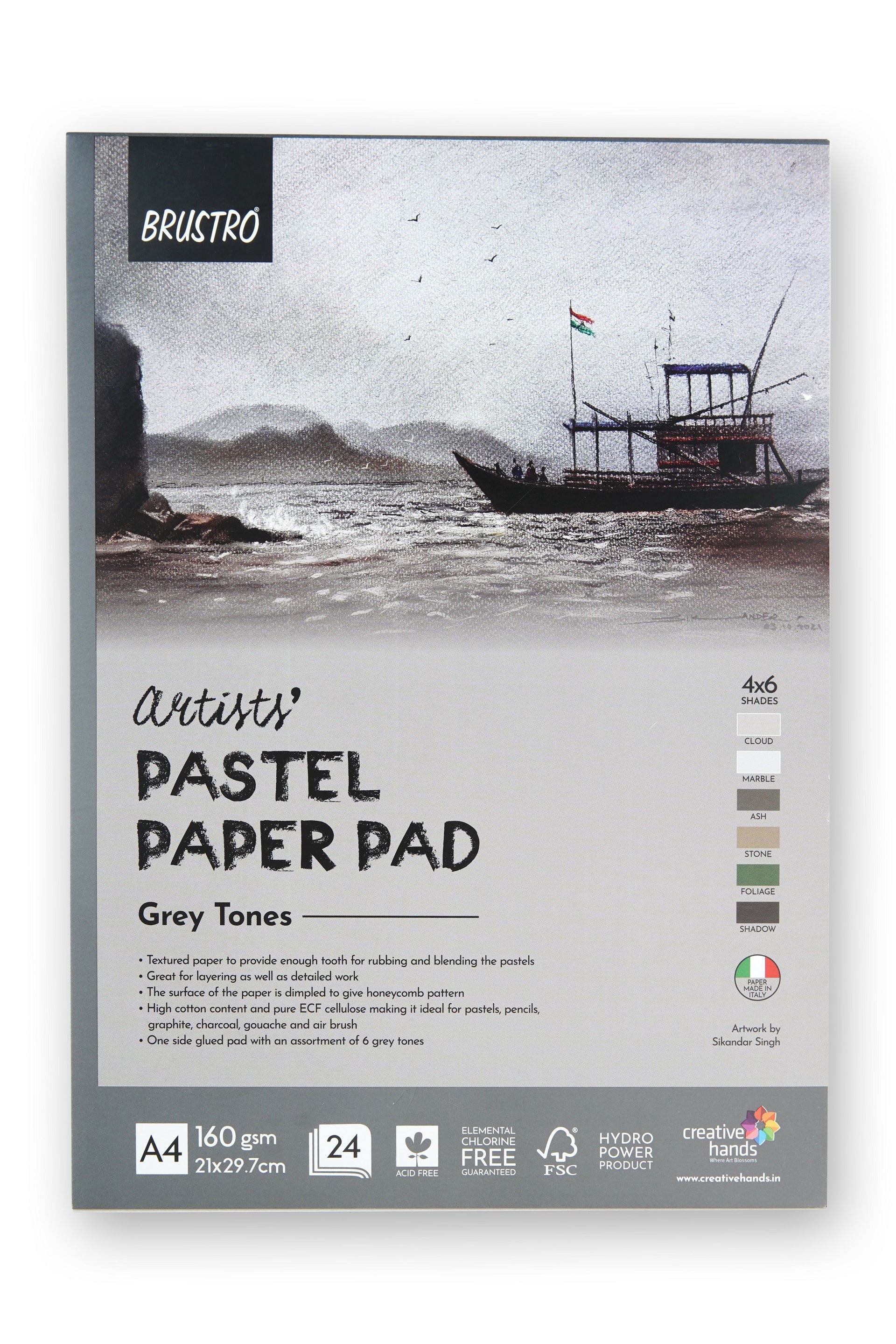 Brustro Artists' Pastel Paper Pad of 24 Sheets (160 GSM), Colour - Grey Tones, Size - A4