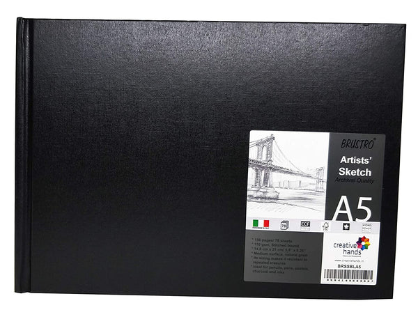 Brustro Artists Sketch Book Stitched Bound A5 Size, Landscape, 156 Pages, 110 GSM (Acid Free)