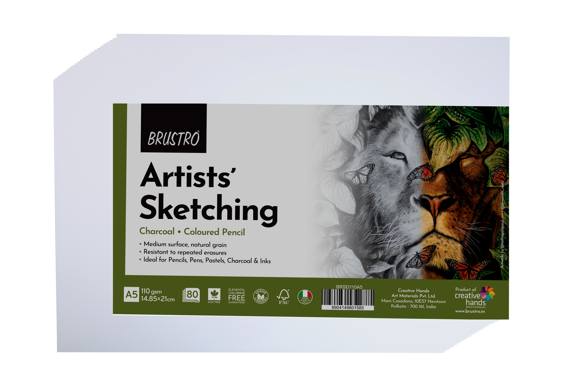 Brustro Artists Sketching Paper 110 GSM A5 Size, Pack of 80 Sheets