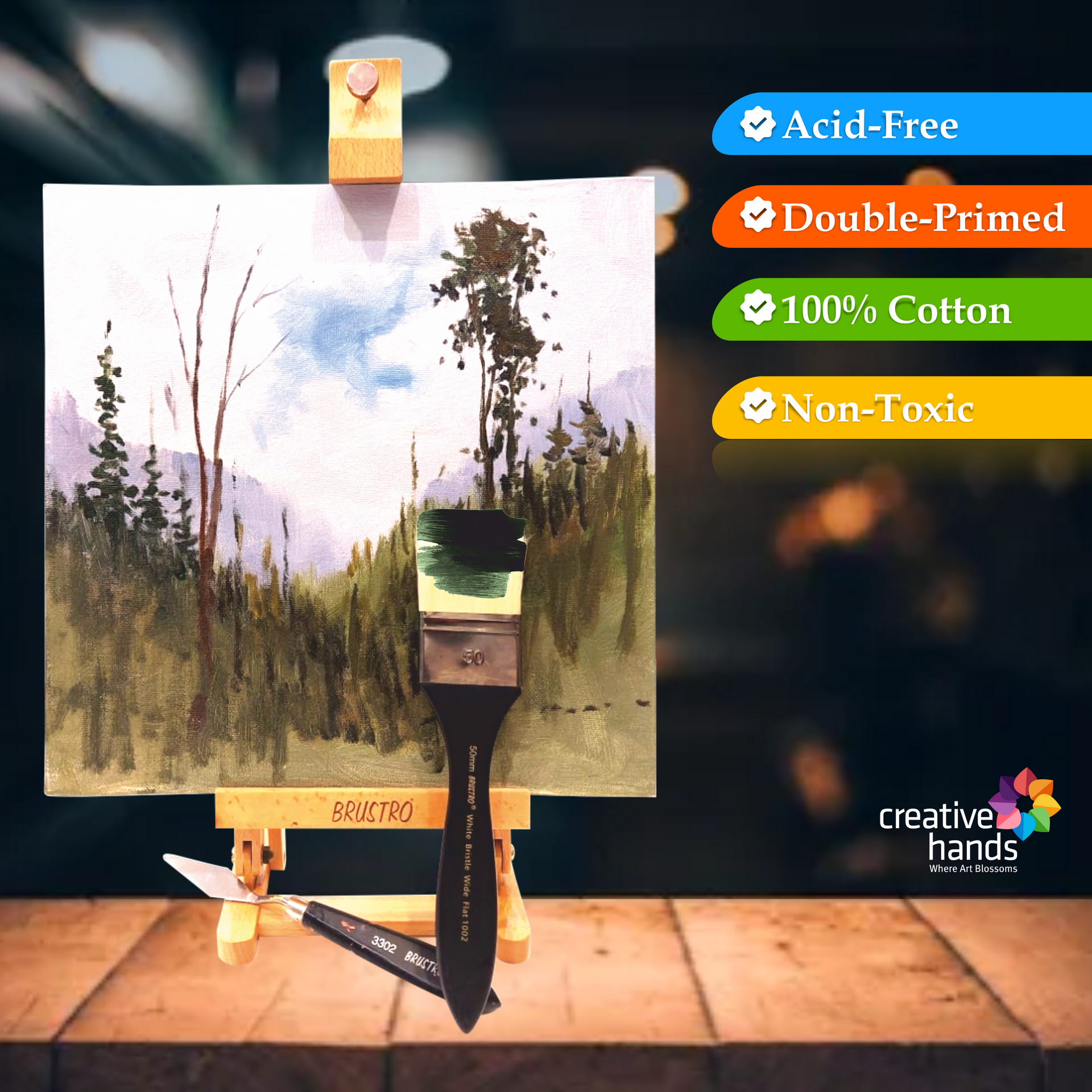 BRUSTRO Artists Small Tabletop A-Frame Wooden Easel, 12 inch with Canvas Board Medium Grain Combo, 10"X12" -Pack of 4