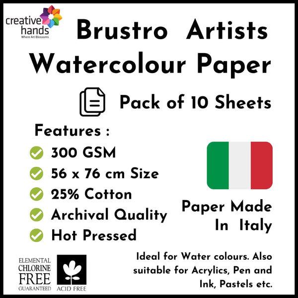 Brustro Artists' Watercolour paper 25% cotton HP 300 Gsm 56 x 76 cm (10 Sheets)