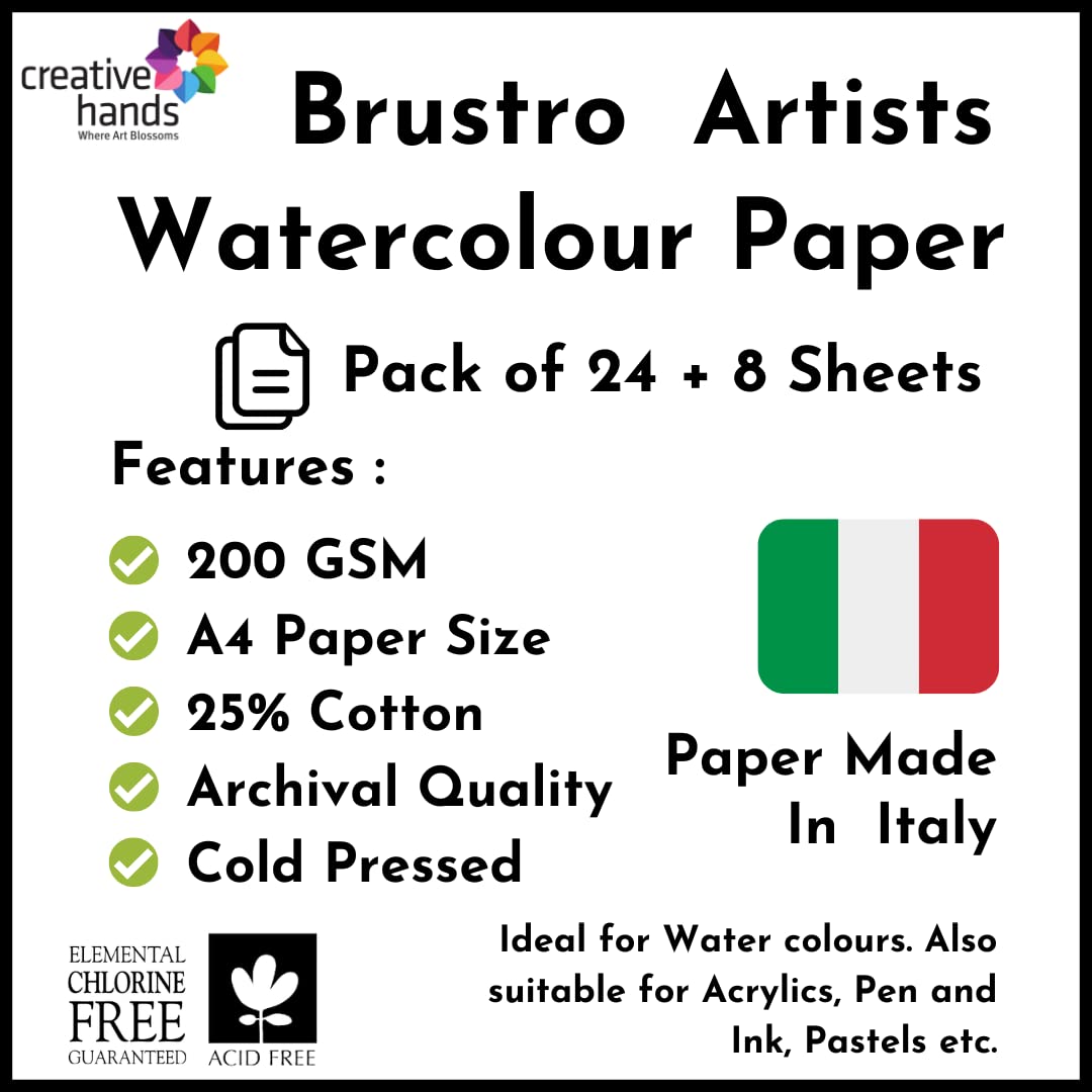 Brustro Artists Watercolour Paper, A4 Size, 200 GSM, 25% Cotton CP, 12 + 4 Sheets Free (Pack of 2)