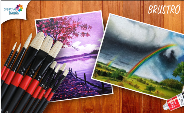 BRUSTRO Artists White Bristle Set of 10 Brushes for Oil and Acrylic