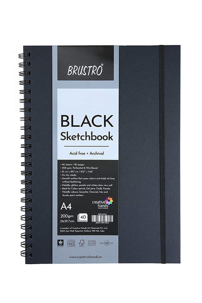 Brustro Black Sketchbook, Wiro Bound, Size A4, 200GSM (40 Sheets) 80 Pages