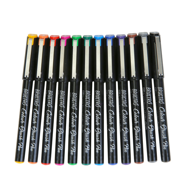 BRUSTRO Colour Brush Pens Set of 12 ( Pigment based , Hard tip brush pen ) Flexible tip for lettering and drawing techniques.