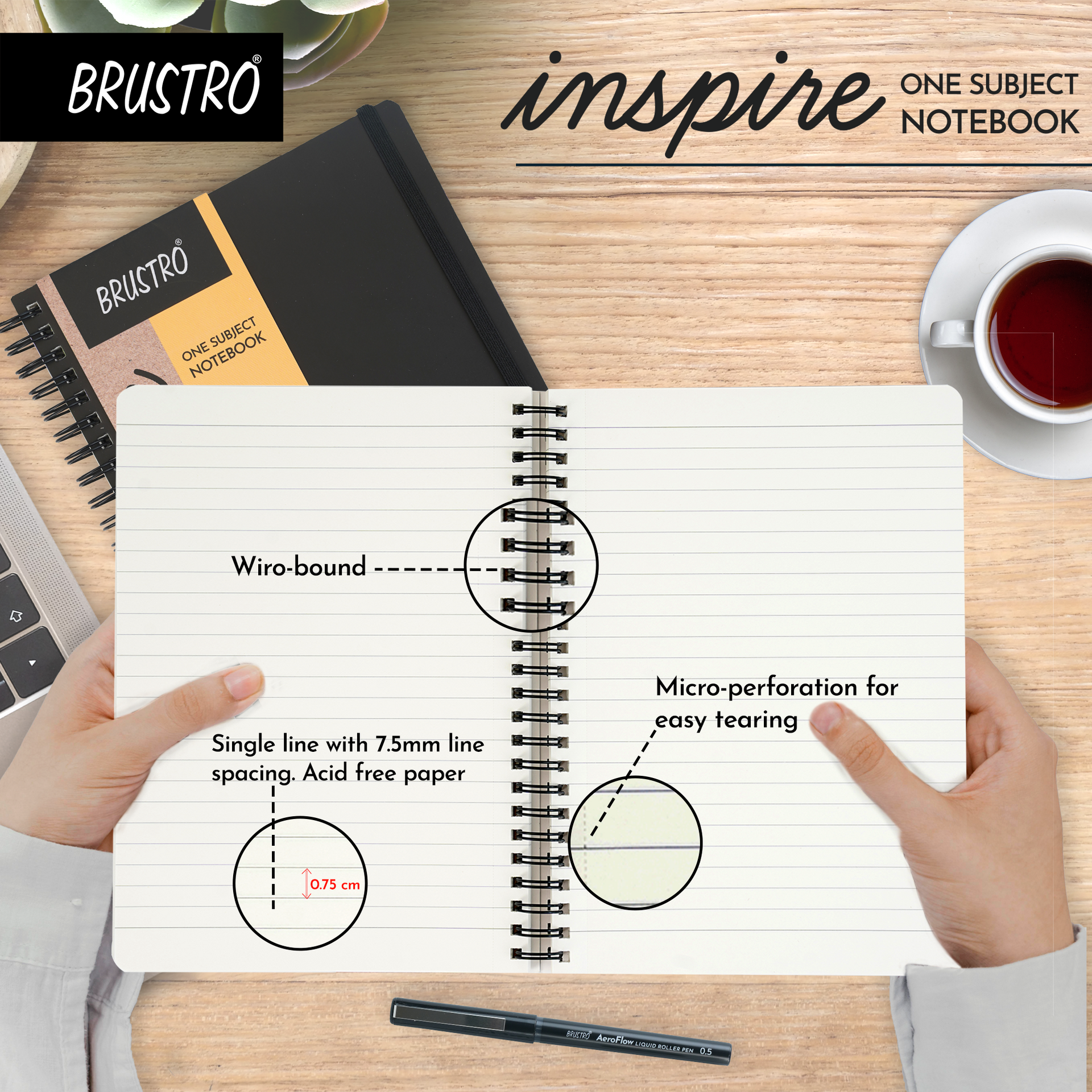 BRUSTRO Inspire A5 Size, 1 Subject Ruled Notebooks (Set of 2), 80 sheets/160 pages, 70 gsm ivory paper, Black/Grey Velvety Touch Cover