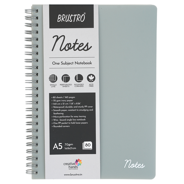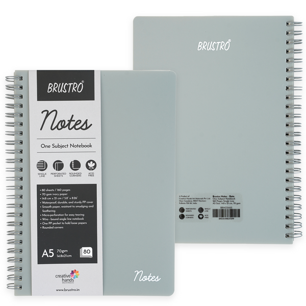 BRUSTRO Notes A5 Size, 1 Subject Ruled Notebook, 80 sheets / 160 pages, 70 gsm Ivory paper, Slate Cover