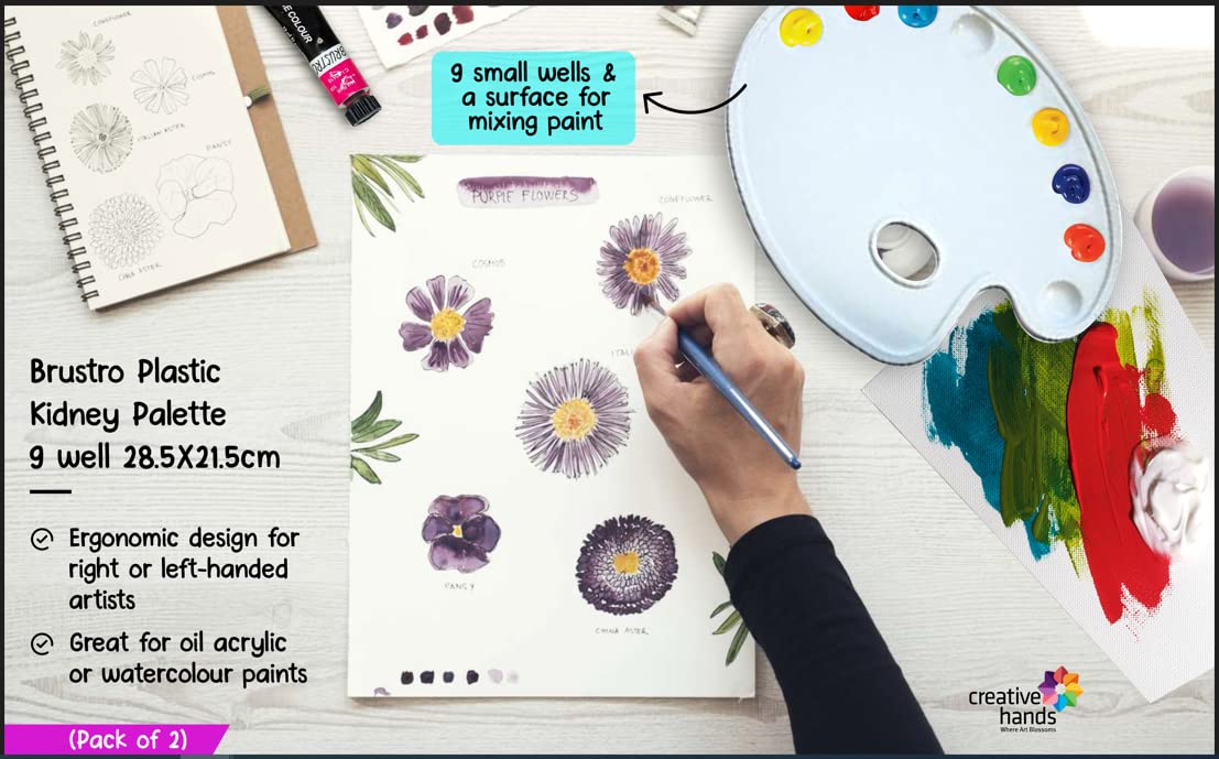 BRUSTRO Oval Shaped 9 Well Plastic Palette 21X28CM. (Pack of 2)