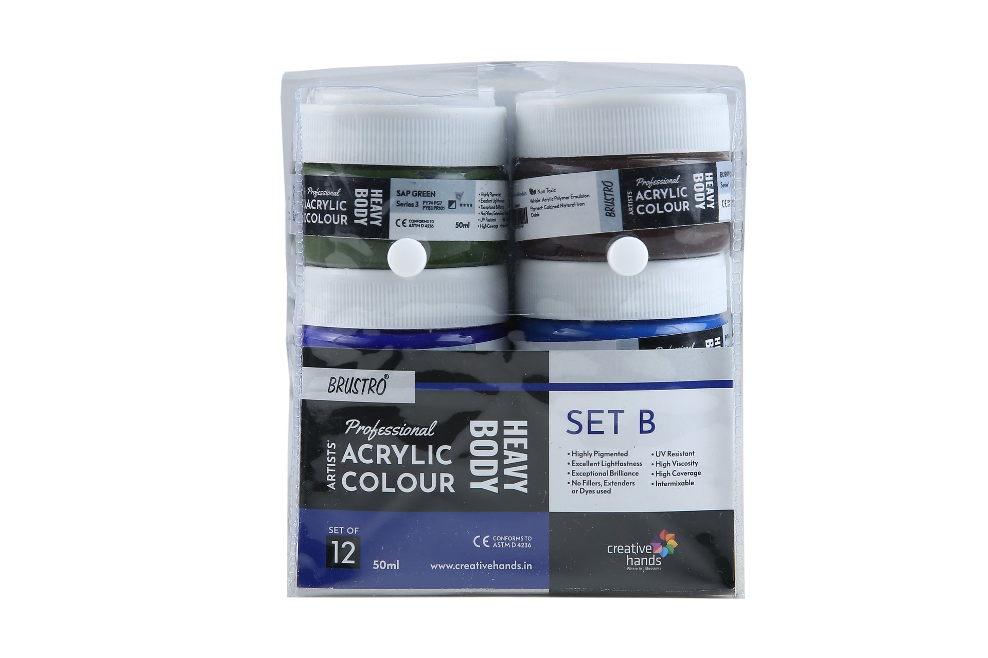 Brustro Professional Artists' HEAVYBODY Acrylic Paint Packs - 50ML Pack of 12 B