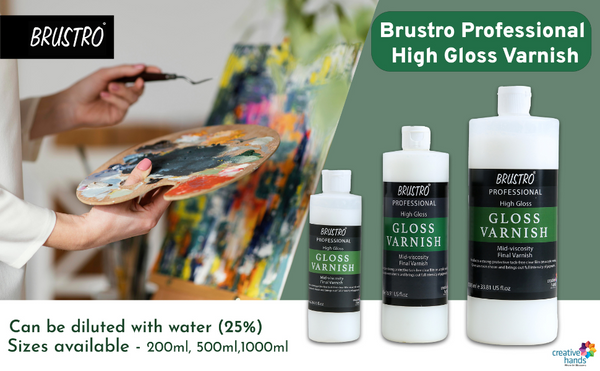 Brustro Artist's Varnish| High Gloss Finish|500ml| Apply with Brush |Perfect Coating on Acrylic Painting,Non-yellowing,Transparent,Canvas,Paper, Artwork Protection.